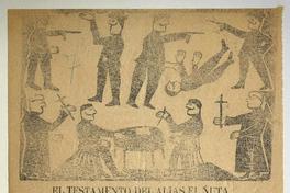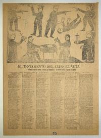 El testamento del alias el Ñuta ; Terrible tiroteo entre ajentes de pesquisa i bandidos en la calle de Herrera / Daniel Meneses. Santiago : Imprenta J. Gregorio Olivares, [1900?] 1 hoja : ilustraciones ; 50 x 36 cm. .