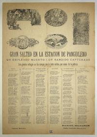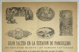 Gran salteo en la estacion de Panguilemo : un empleado muerto i un bandido capturado ; Los grandes estragos en los campos con la jente nortina, por causa de la pobreza / Daniel Meneses. [Chile] : Imprenta Moneda, [entre 1890-1909] 1 hoja : ilustraciones ; 54 x 38 cm. .