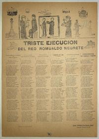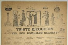 Triste ejecucion del reo Romualdo Negrete / Daniel Meneses. Valparaíso : Imprenta y Litografía de G. A. Rohde y Ca., [1901?] 1 hoja : ilustraciones ; 55 x 39 cm. .