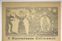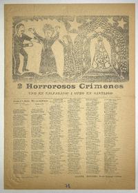 2 Horrorosos crímenes : uno en Valparaiso i otro en Santiago / Daniel Meneses. [Chile] : Imprenta Leon Víctor Caldera, [1904?] 1 hoja : ilustraciones ; 51 x 36 cm. .