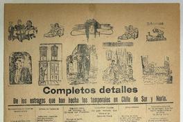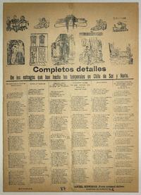 Completo detalles de los estragos que han hecho los temporales en Chile de sur y norte / Daniel Meneses. Valparaíso : Imprenta y Litografía de G. A. Rohde y Ca., [1902?] 1 hoja : ilustraciones ; 54 x 39 cm. .