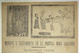 Muerte i testamento de la poetisa Rosa Araneda ; Monstruo feroz / Daniel Meneses. [Chile] : [Impresor no identificado], [1895?] 1 hoja : ilustraciones ; 55 x 39 cm. .
