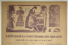 La horrible catástrofe en la Lavanderia Internacional, cuatro mujeres muertas ; Completos detalles de los estragos causados en el sur por el temporal / Daniel Meneses. [Chile] : Imprenta Moneda, [1899?] 1 hoja : ilustraciones ; 55 x 39 cm. .