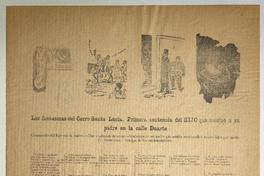 Los fantasmas del Cerro Santa Lucia ; Primera sentencia del hijo que asesinó a su padre en la calle Duarte / Juan Bautista Peralta. [Chile] : Imprenta O. Henriquez, [1899?] 1 hoja : ilustraciones ; 55 x 38 cm. .
