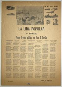 La lira popular 2o. número : versos de ocho sílabas / por Juan B. Peralta. [Chile] : Imprenta Moneda, [1899?] 1 hoja : ilustraciones ; 52 x 35 cm. .