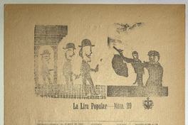La lira popular núm. 29 / Juan B. Peralta. [Chile] : [Imprenta de La "Ilustración Militar"], [1901?] 1 hoja : ilustraciones ; 55 x 39 cm. .