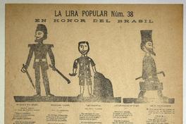 En honor del Brasil : la lira popular núm. 38 / Juan B. Peralta. [Chile] : Imprenta "El Debate", [1902?] 1 hoja : ilustraciones ; 51 x 39 cm. .