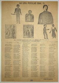 El doble crímen de la calle de Blanco ; La muerte del guardian Meza : la lira popular núm. 55 / Juan B. Peralta. [Chile] : Imprenta "El Debate", [1902?] 1 hoja : ilustraciones ; 55 x 38 cm. .