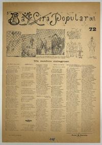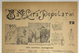 Un médico milagroso : la lira popular no. 72 / Juan B. Peralta. [Chile] : Imprenta "El Debate", [1903?] 1 hoja : ilustraciones ; 56 x 39 cm. .