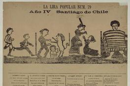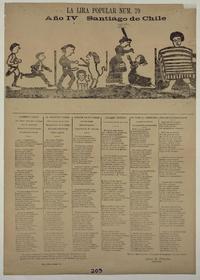La lira popular año IV num. 79 Santiago de Chile / Juan B. Peralta. [Chile] : Imprenta San Antonio, [entre 1890-1933] 1 hoja : ilustraciones ; 55 x 39 cm. .