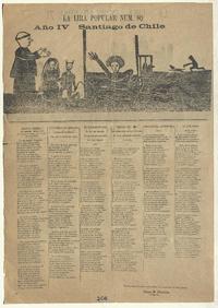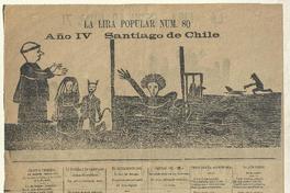 La lira popular año IV num. 80 Santiago de Chile / Juan B. Peralta. [Chile] : [Impresor no identificado], [entre 1890-1933] 1 hoja : ilustraciones ; 55 x 39 cm. .