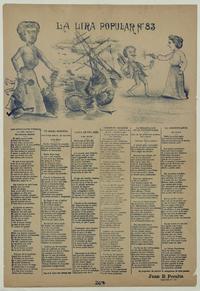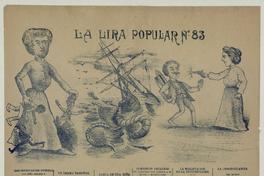 La lira popular no. 83 / Juan B. Peralta. [Chile] : Imprenta de B. Rojas, [entre 1890-1933] 1 hoja : ilustraciones ; 56 x 39 cm. .