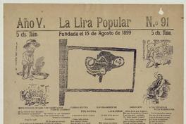 La lira popular año V no. 91 / Juan B. Peralta. [Santiago de Chile] : Imprenta y Encuadernación El Patriota, [1904?] 1 hoja : ilustraciones ; 56 x 39 cm. .