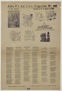 La lira popular no. 95 / Juan B. Peralta. [Chile] : [Impresor no identificado], [1904?] 1 hoja : ilustraciones ; 55 x 38 cm. .
