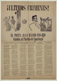 ¡Ultimos crimenes! ; El poeta Juan Mauro Bio-Bio saluda al pueblo de Santiago / Juan Mauro Bio-Bio. [Chile] : Imprenta Moneda, [1899?] 1 hoja : ilustraciones ; 55 x 39 cm. .