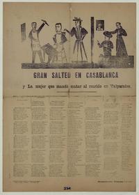 Gran salteo en Casablanca ; y La mujer que mandó matar al marido en Valparaiso / Desiderio Parra. [Santiago] : Imprenta y Encuadernación Chilena, [1899?] 1 hoja : ilustraciones ; 55 x 39 cm. .