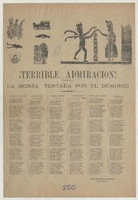 ¡Terrible admiracion! : la monja tentada por el demonio / José Hipólito Cordero. [Chile] : [Impresor no identificado], [1890?] 1 hoja : ilustraciones ; 55 x 38 cm. .