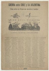 Guerra entre Chile y La Arjentina ; Gran salteo en Ovalle con muertos y heridos ; La culebra voladora ; La guerra de España y Estados Unidos / José Hipolito Casas Cordero. [Chile] : Imprenta Albion, [1898?] 1 hoja : ilustraciones ; 55 x 38 cm. .