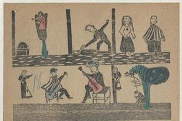 La cantora que ahorcó al querido con una cuerda -- La prohibicion de licores : muerte del alcoholismo i duelo del tomador -- Los indios con dos caras llegados a los pueblos chilenos -- El nieto que mato al abuelo por el cobro de una herencia de su padre en Petorca -- Percances del enamorado -- Gran cantrapunto [i.e. contrapunto] : cantado en guitarron del cuyano Pata de Fuego con el mentado chileno el Jigantesco.
