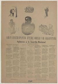 Gran contrapunto entre Chile i la Arjentina ; Aplausos a la Guardia Nacional / José Hipólito Casas Cordero. [Chile] : Imprenta Albion, [1890?] 1 hoja : ilustraciones ; 56 x 38 cm. .