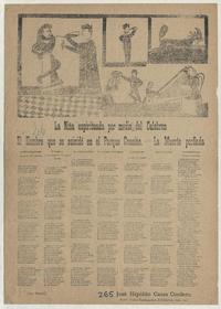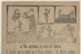 La niña espirituada por medio del culebron ; El hombre que se suicidó en el Parque Cousiño ; La muerte porfiada / José Hipólito Casas Cordero. [Chile] : Imprenta Moneda, [1901?] 1 hoja : ilustraciones ; 55 x 39 cm. .