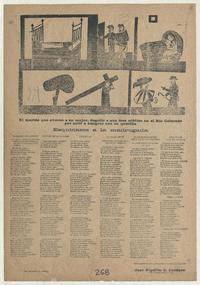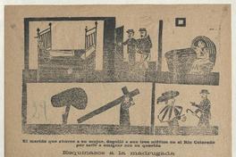 El marido que ahorcó a su mujer, degolló a sus tres niñitos en el Rio Colorado por salir a emigrar con su querida ; Esquinazos a la madrugada / José Hipólito C. Cordero. [Chile] : Imprenta "El Debate" [1903?] 1 hoja : ilustraciones ; 55 x 38 cm. .