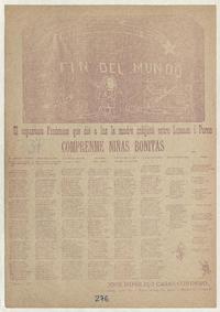 El espantoso fenómeno que dió a luz la madre indíjena entre Lumaco i Puren ; Cómprenme niñas bonitas / José Hipólito Casas Cordero. [Chile] : Imprenta Moneda, [1899?] 1 hoja : ilustraciones ; 55 x 39 cm. .