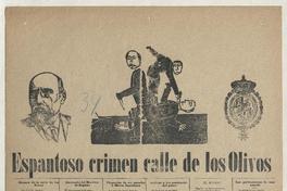 Espantoso crimen calle de los Olivos / José Hipólito Casas-Cordero. [Chile] : Imprenta Albion, [1897?] 1 hoja : ilustraciones ; 55 x 39 cm. .