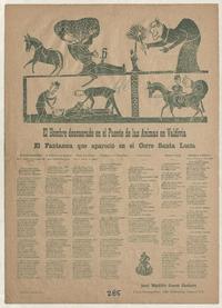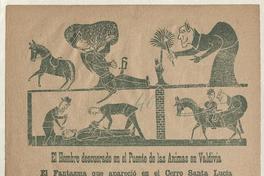 El hombre descuerado en el Puente de las Animas en Valdivia ; El Fantasma que apareció en el Cerro Santa Lucía / José Hipólito Casas Cordero. [Chile] : Imprenta Moneda, [1899?] 1 hoja : ilustraciones ; 55 x 39 cm. .
