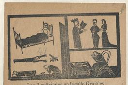 Los 9 asfixiados en la calle Grajales ; La madre que se comio a sus tres hijos / José Hipolito Casas Cordero. [Chile] : Imprenta L. V. Caldera, [1901?] 1 hoja : ilustraciones ; 55 x 38 cm. .
