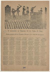 El fusilamiento en Valparaiso del reo Valdes (El Nuta) ; Prision perpétua del reo Francisco Olivares y los versos del roto Pequen / José Hipolito Casas Cordero. [Chile] : Imprenta L. V. Caldera, [1900?] 1 hoja : ilustraciones ; 55 x 38 cm. .