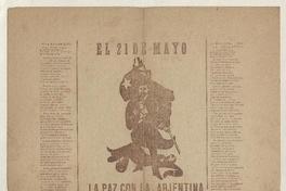 El 21 de Mayo ; La paz con la Arjentina / Pancho Devia. [Chile] : [Impresor no identificado], [1890?] 1 hoja : ilustraciones ; 54 x 38 cm. .