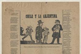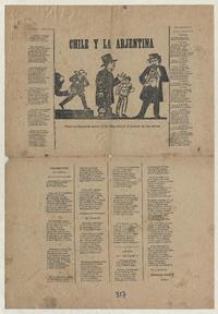 Chile y la Arjentina ; Gran contrapunto entre el rio Mapocho y el puente de los carros / Francisco Devia F. [Santiago] : [Impresor no identificado], [1890?] 1 hoja : ilustraciones ; 54 x 38 cm. .