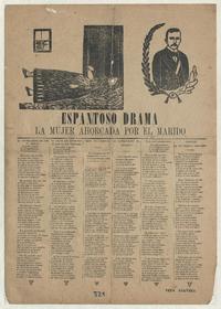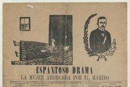 Espantoso drama : la mujer ahorcada por el marido / Pepa Aravena. [Chile] : [Impresor no identificado], [1896?] 1 hoja : ilustraciones ; 54 x 38 cm. .