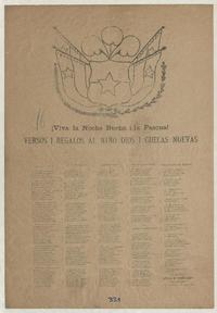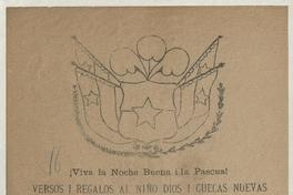 ¡Viva la Noche Buena i la Pascua! ; Versos i regalos al Niño Dios i cuecas nuevas / Juan R. Gonzalez. [Santiago] : Imprenta "La Sin Rival", [1890?] 1 hoja : ilustraciones ; 55 x 38 cm. .