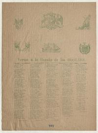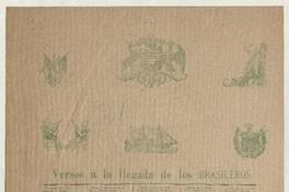 Versos á la llegada de los brasileros / Lázaro Salgado. [Chile] : [Impresor no identificado], [1903?] 1 hoja : ilustraciones ; 51 x 38 cm. .