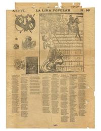 La lira popular año VI no. 96. [Chile] : [Impresor no identificado], [1904?] 1 hoja : ilustraciones ; 76 x 54 cm. .