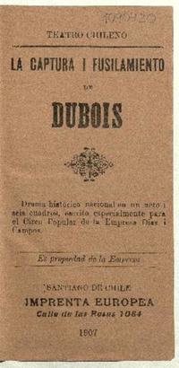 La Captura i fusilamiento de Dubois : drama histórico nacional en un acto i seis cuadros, escrito especialmente para el Circo Popular de la Empresa Diaz i Campos. Santiago de Chile : Imprenta Europea, 1907. 28 páginas ; 17 cm. .