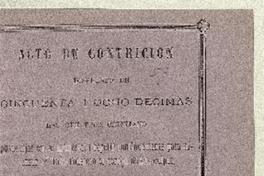 Acto de contrición : dispuesto en cincuenta i ocho décimas : las que todo cristiano puede fijar en su memoria, i repetir continuamente para alcanzar del Todo-Poderoso el perdón de sus culpas / por el L. D. Diego Calderón Velarde. Santiago : Imp. de El Independiente, 1876. 30 páginas ; 16 cm. .