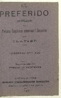 El Preferido : recopilación de poesías, canciones amorosas i zarzuelas : cuaderno segundo / por Clapier. Santiago de Chile : Imprenta i Encuadernación Barcelona, 1897. 31, [1] páginas ; 13 cm. .
