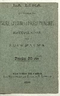La Lira : colección de valses, canciones i poesías populares recopiladas / por Luis Palma. Santiago de Chile : Imp. Valparaíso de Federico T. Lathrop, 1900. 31, [1] páginas ; 13 cm. .
