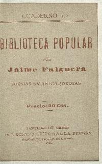 Biblioteca popular : poesias satirico-jocosas : cuaderno 1º / Jaime Falguera. Santiago de Chile : Imp. Centro Editorial La Prensa, 1901. 32 páginas ; 13 cm. .