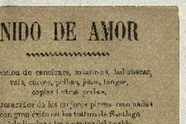 Nido de amor : colección de canciones, mazurcas, habaneras, vals, cuecas, polkas, jotas, tangos, coplas i otras yerbas : entresacados de las mejores piezas entrenadas con gran éxito en los letreros de Santiago i dedicadas a las amantes del pueblo chileno.