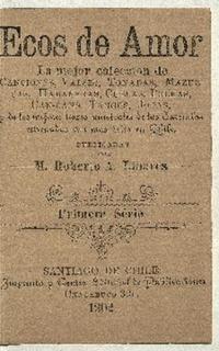 Ecos de amor : colección de valses, mazurcas, tangos, habaneras, jotas, tonadas, polkas, canciones y de los mejores trozos de las zarzuelas entrenadas con más éxito en Chile / [publicadas por M. Roberto A. Linares]. Santiago [de Chile] : [Imprenta y] Centro Editorial de Publicaciones, 1902. 40 p. ; 13 cm. .
