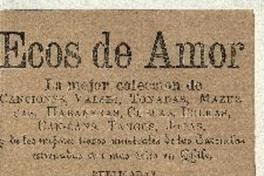 Ecos de amor : colección de valses, mazurcas, tangos, habaneras, jotas, tonadas, polkas, canciones y de los mejores trozos de las zarzuelas entrenadas con más éxito en Chile [publicadas por M. Roberto A. Linares].
