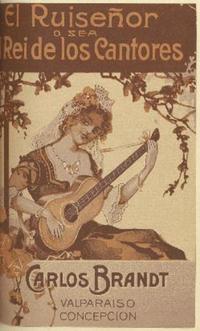 El Ruiseñor o sea el rei de los cantores : recopilación de canciones, jotas, habaneras, valses, cuecas, peteneras, brindis y versos chistosos. Valparaíso ; Concepción : [Imprenta de] Carlos Brandt, 1907. 101 páginas ; 13 cm. .