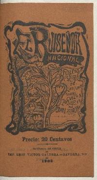 El Ruiseñor nacional : folleto especial de canciones, tonadas, cuecas, zarzuelas, etc., etc. / por Juan B. Peralta. Santiago de Chile : Imp. León V. Caldera, 1906. 32 páginas : ilustraciones ; 17 cm. .