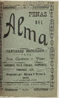 Penas del alma : cantares escojidos : para arpa, guitarra o piano : canciones, vals, cuecas, cantares, tonadas, etc. recopilados por Máximo V. Torres R.