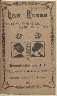 Las Rosas : cuecas, tonadas, canciones, etc. / recopiladas por A. L. Santiago : Imprenta Cármen, 1916. 32 páginas : ilustraciones ; 13 cm. .