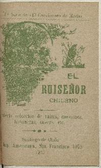 El Ruiseñor chileno : selecta colección de valses, canciones, habaneras, cuecas, etc. Santiago de Chile : Imp. América, 1915. 35, [1] páginas ; 13 cm. .